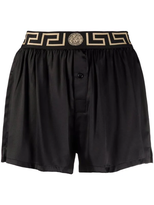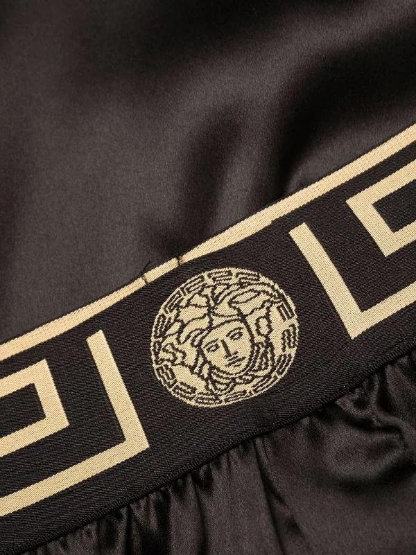 Ceinture élastique, détail Greca signature, boutonnière sur le devant, coupe courte, motif Medusa. Couleur : noir.