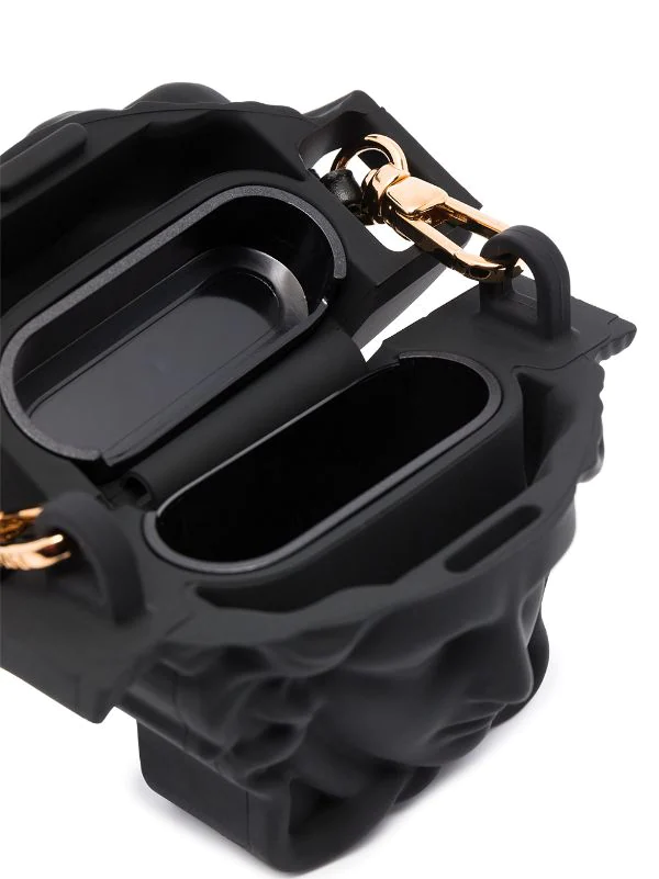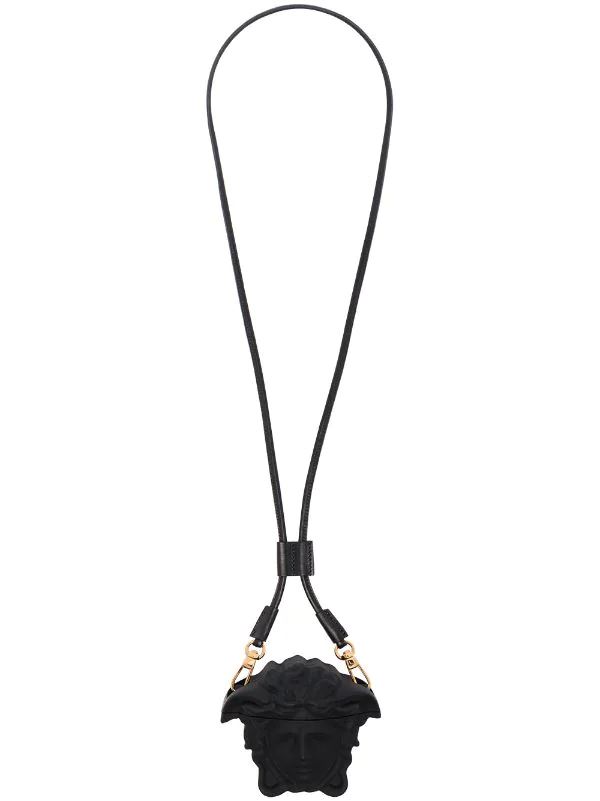 Port USB rechargeable , motif Medusa, finitions en métal doré, bride porté autour du cou détachable. Couleur : noir.