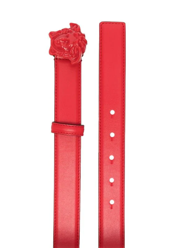 Motif Medusa, passants de ceinture, taille ajustable. Couleur : rouge. Matière : cuir.