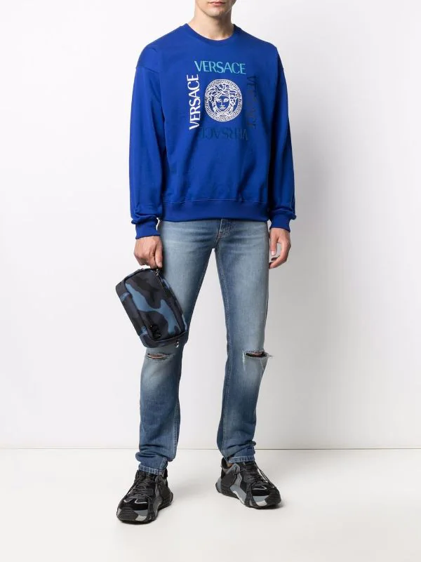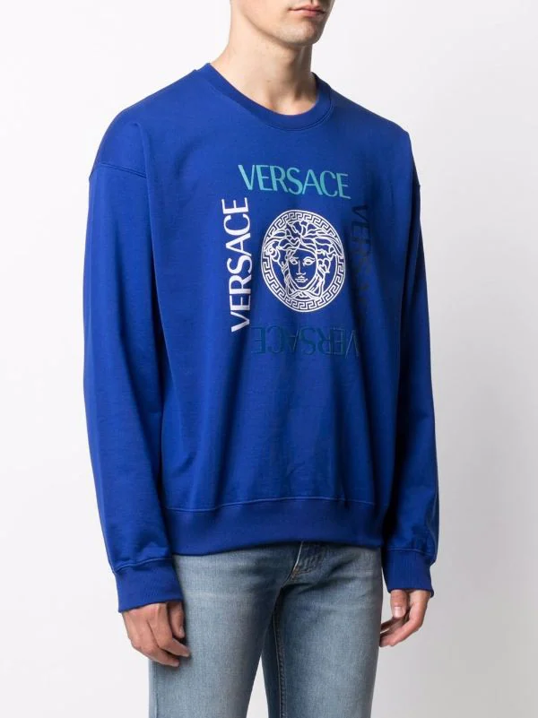 Motif Medusa, logo imprimé à la poitrine, encolure ras du cou, manches longues. Matière : coton.