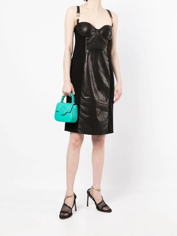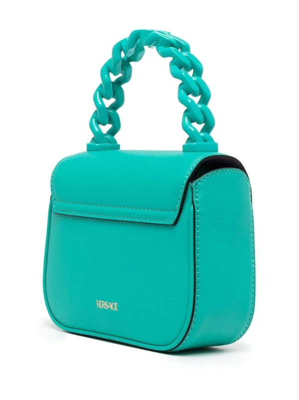 Détail Medusa, logo imprimé à l’arrière, anse arrondie, bride porté épaule détachable et ajustable, rabat sur le dessus à fermeture magnétique, compartiment principal, compartiments intérieurs pour carte, logo imprimé à l’intérieur, finitions en métal doré. Matière : cuir.