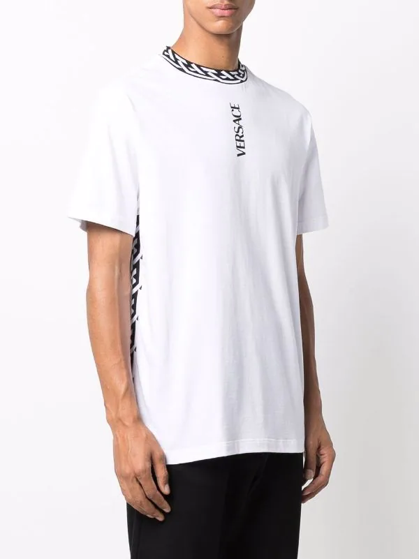 Imprimé La Greca signature, logo imprimé sur le devant, col montant, manches courtes. Matière : coton.