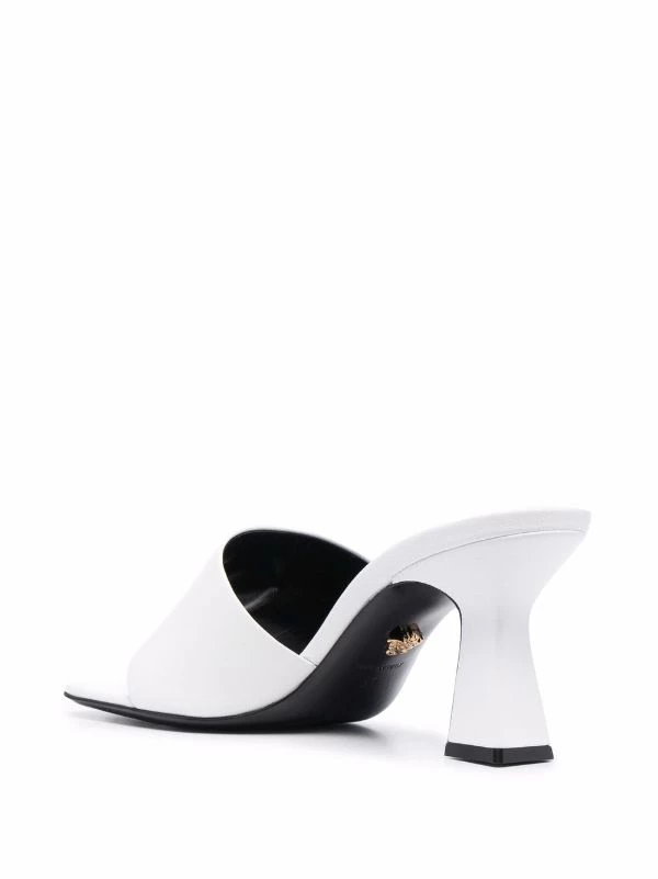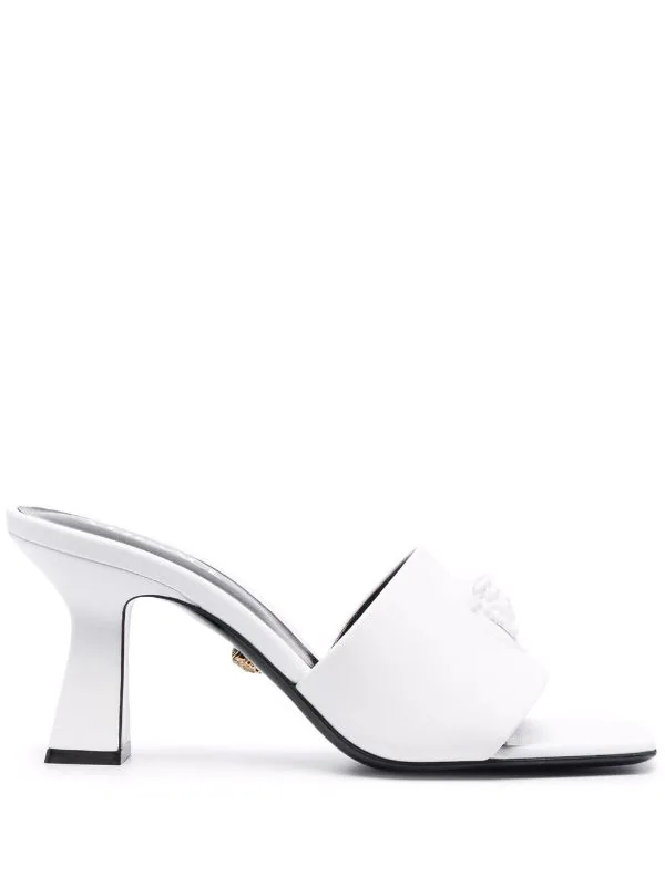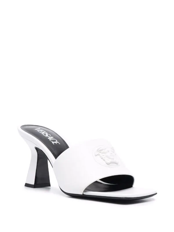 Doublure en cuir, motif Medusa, bout ouvert, bride à un doigt, semelle intérieure à logo, talon haut épais.
