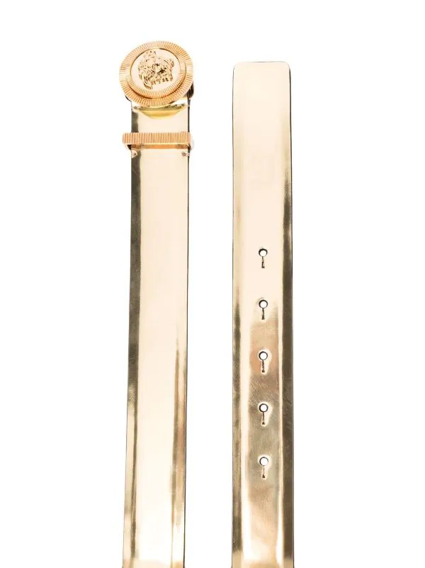 Fini métallisé, détail Medusa, trous percés, taille ajustable. Couleur : or. Matière : cuir de veau.