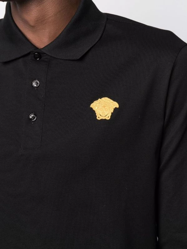 Col polo, patte de boutonnage sur le devant, manches longues, poignets nervurés, ourlet plus long au dos. Couleur : noir. Matière : coton.