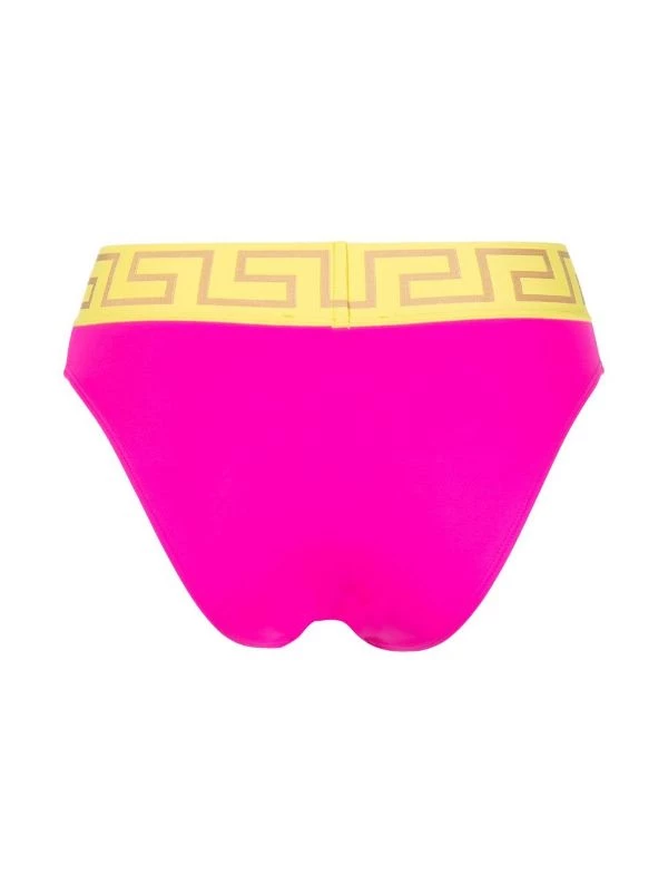 Rose, motif Medusa, ceinture à logo, ceinture élastique. Veillez à essayer les maillot de bain par-dessus vos propres sous-vêtements.