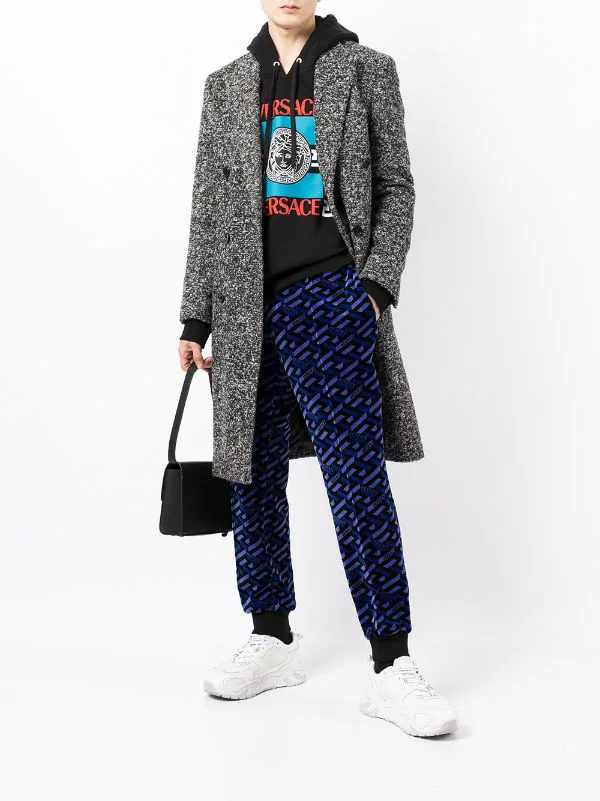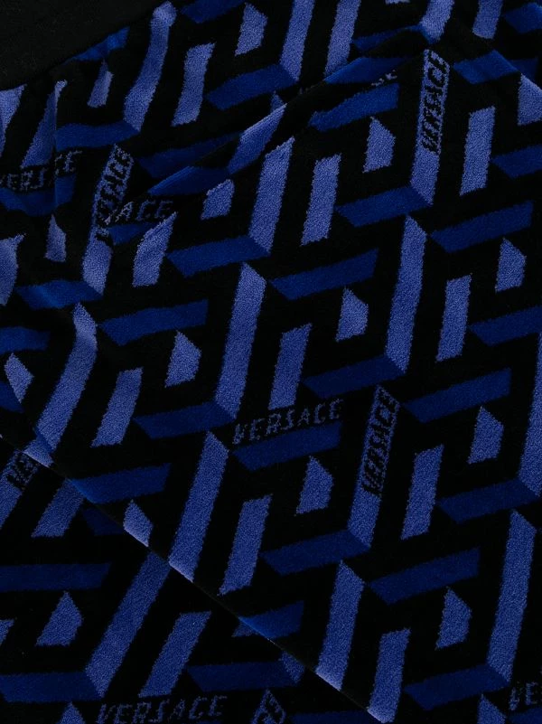 Imprimé La Greca signature, texture chenille, ceinture élastique, coutures ton sur ton, poches plaquées latérales, poignets élastiqués. Matière : coton.