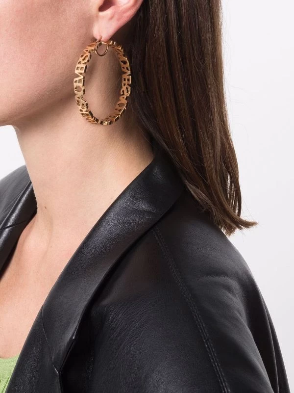 Logo doré, fermoir épingle pivotant. Matière : métal. Ces boucles d’oreilles sont vendues par paire.