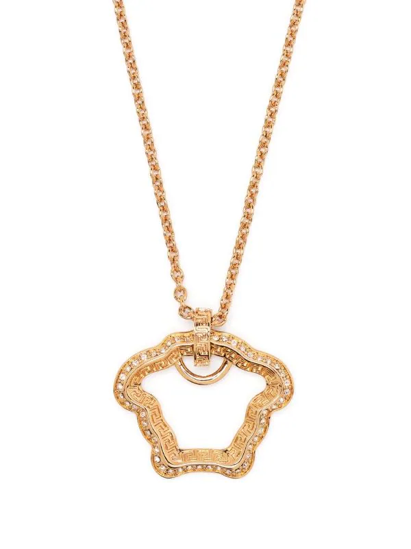 Finitions en métal doré, motif Medusa, détails de chaînes, fermoir mousqueton. Couleur : or. Matière : métal.