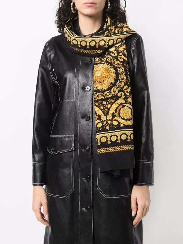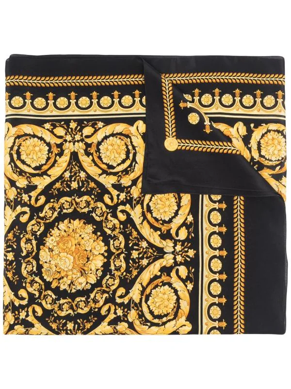 Modèle bicolore, imprimé Barocco signature, bords finis. Matière : soie.
