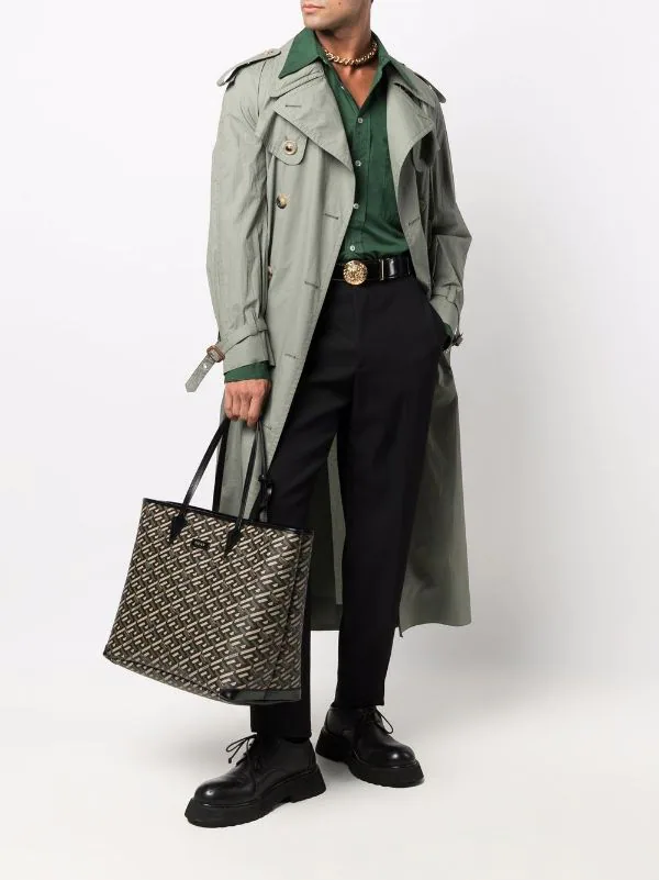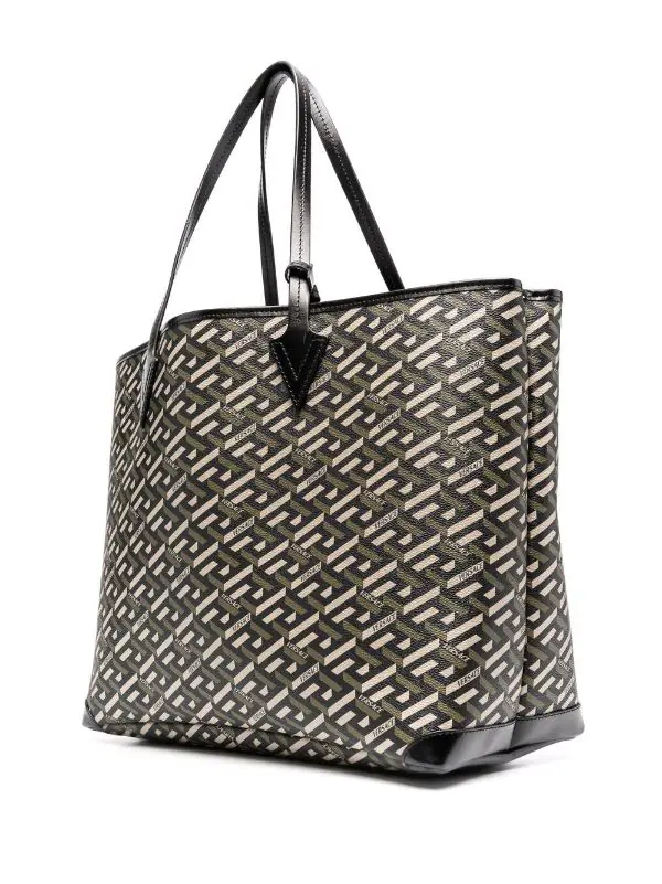 Motif géométrique, imprimé monogrammé, anses sur le dessus, compartiment principal. Couleur : noir.