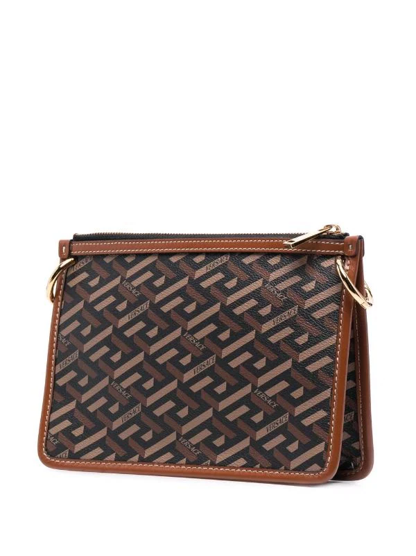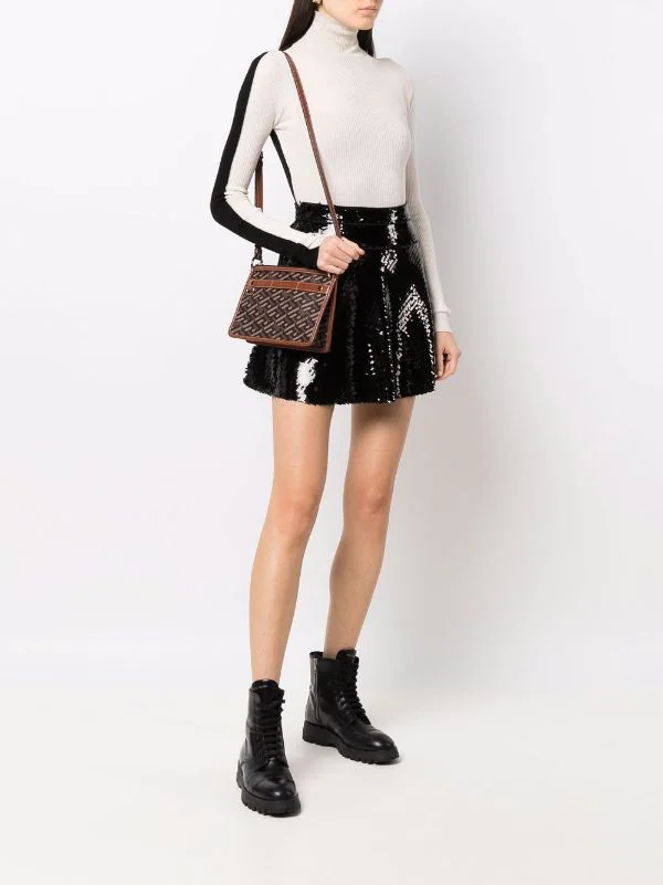 Imprimé monogrammé, logo imprimé sur le devant, bride porté épaule ajustable, fermeture zippée sur le dessus, patch logo intérieur. Couleur : marron. Matière : cuir.
