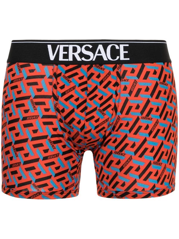 Motif Greca signature imprimé, ceinture à logo, ceinture élastique. N’oubliez pas : cet article doit être essayé par-dessus vos propres vêtements. Assurez-vous que vous ne changerez pas d’avis avant d’ouvrir cet article : les chaussettes et la bonneterie doivent être retournés dans leur emballage d’origine non ouvert.