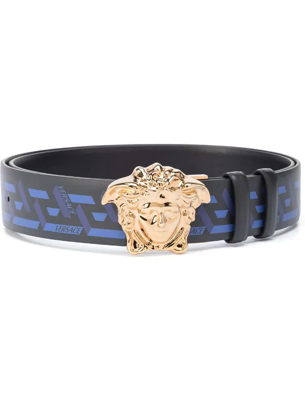 Détail Greca signature, motif Medusa, taille ajustable. Couleur : bleu. Matière : cuir.