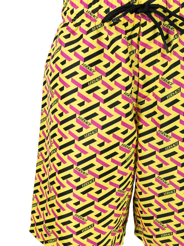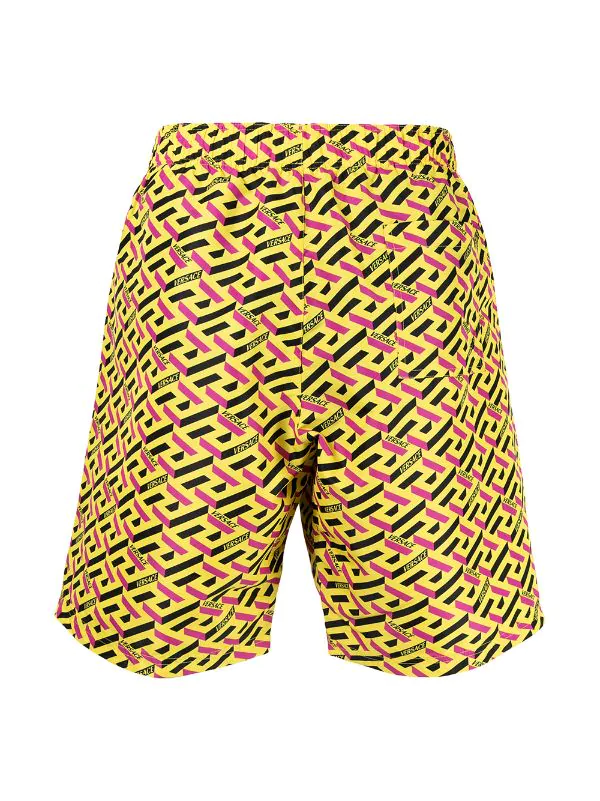 Motif Greca signature imprimé, taille élastique à lien de resserrage, poches latérales fendues. Couleur : jaune. Veillez à essayer les maillot de bain par-dessus vos propres sous-vêtements.