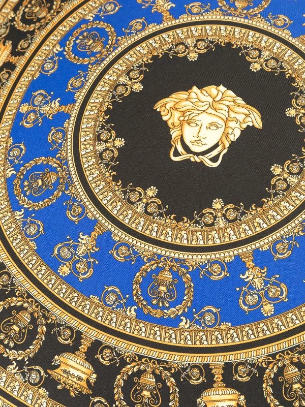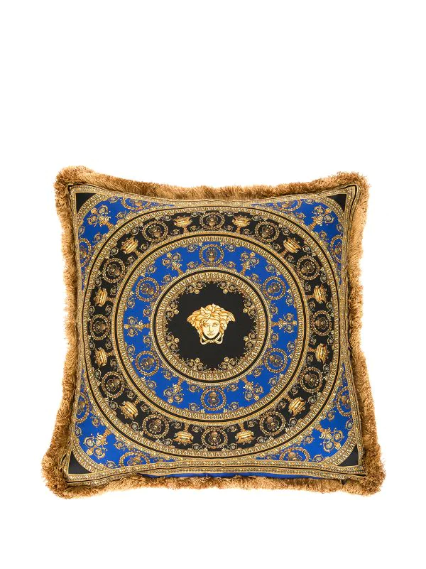 oreiller à imprimé baroque en soie Versace avec finitions effilochées et détail Medusa. Couleur : multicolore.