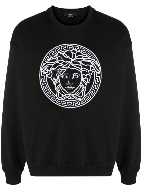 Motif Medusa, broderies, encolure ras du cou, manches longues, effet d’épaules descendues, poignets nervurés, ourlet nervuré. Matière : coton.