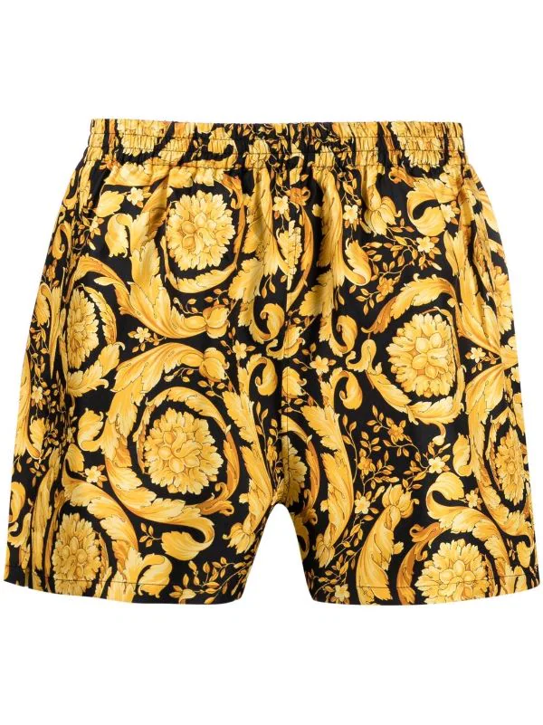 Imprimé Barocco signature, ceinture élastique, coupe droite. Matière : soie.