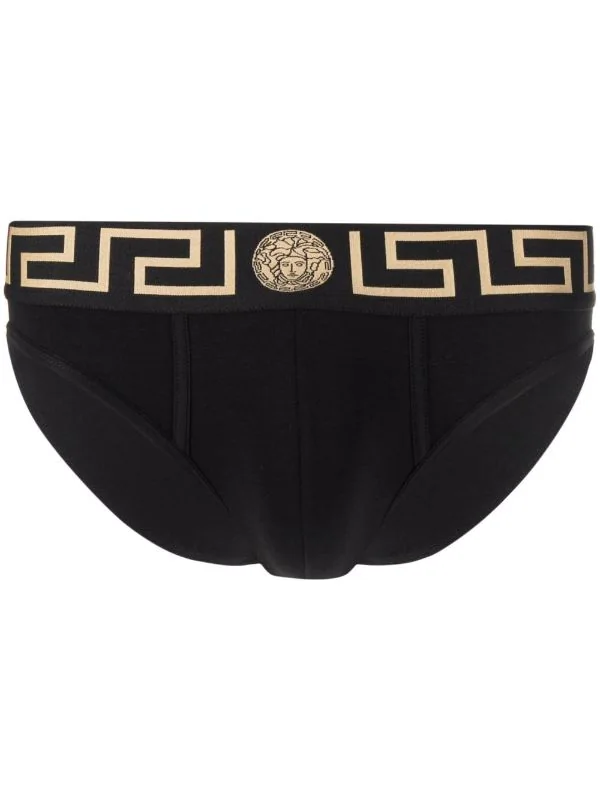 Motif Medusa, détail Greca signature, design à empiècements, construction stretch. N’oubliez pas : cet article doit être essayé par-dessus vos propres vêtements.