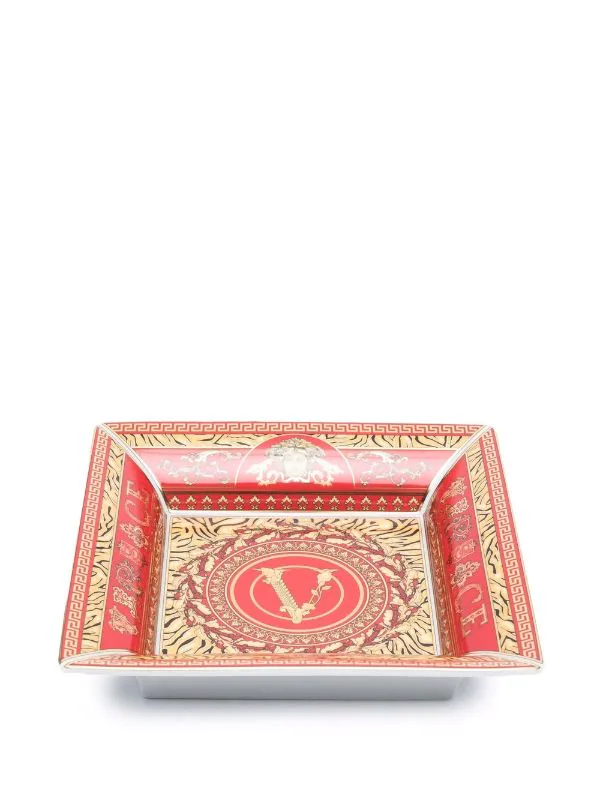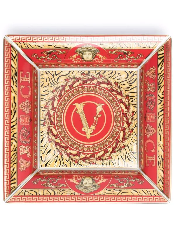 Forme carrée, motif Medusa, imprimé Barocco signature. Matière : céramique.