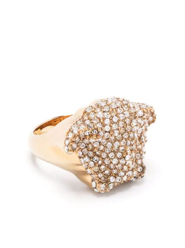 Finitions en métal doré, ornements en cristal de verre, motif Medusa. Matière : laiton.