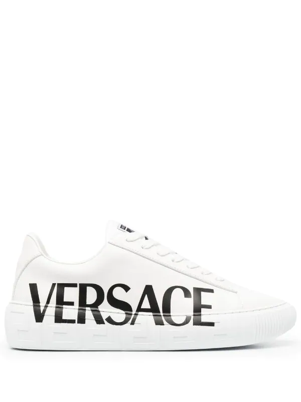 Logo imprimé sur le côté, détail Greca signature, bout rond, fermeture à lacer sur le devant, languette à patch logo, semelle intérieure à logo, semelle plate en caoutchouc. Matière : cuir.
