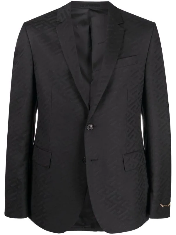 Revers crantés, poche passepoilée sur la poitrine, boutonnière sur le devant, poches latérales à rabat, fente arrière centrale, bordures en chaîne, épaulettes, manches longues. Couleur : noir.