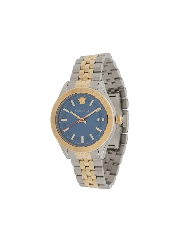 Boîtier rond, mouvement à quartz, bracelet à maillons ajustable. Matière : acier inoxydable.