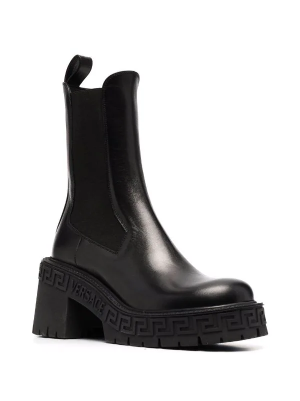 Bout rond, fini mat, empiècements élastiqués sur les côtés, semelle intérieure à logo, languette d’enfilage au talon, semelle à plateforme. Couleur : noir. Matière : cuir.