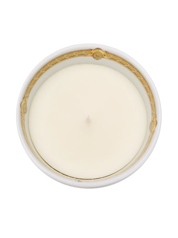 Bougie parfumée Prestige Gala Versace Home avec détail Medusa et motif baroque.