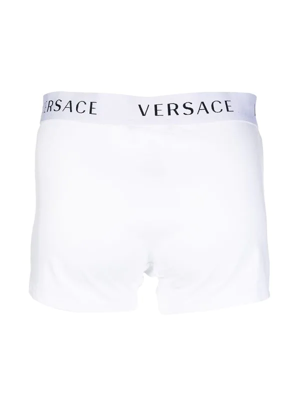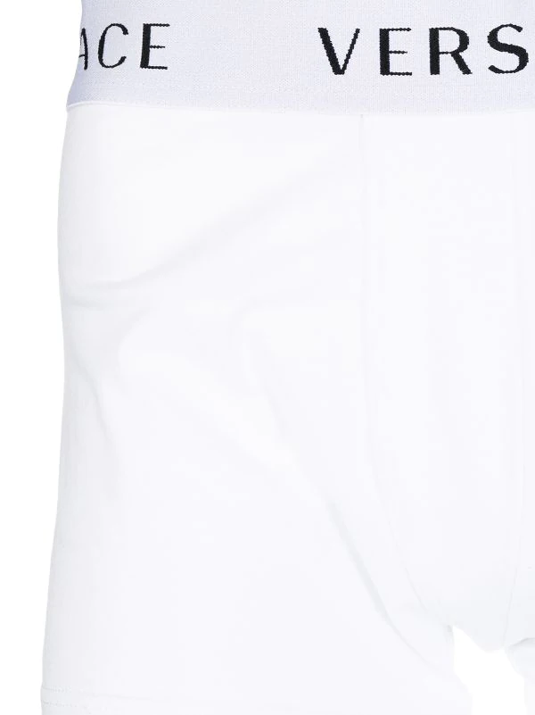 Blanc, coton, ceinture à logo, construction stretch, coutures ton sur ton. N’oubliez pas : cet article doit être essayé par-dessus vos propres vêtements.