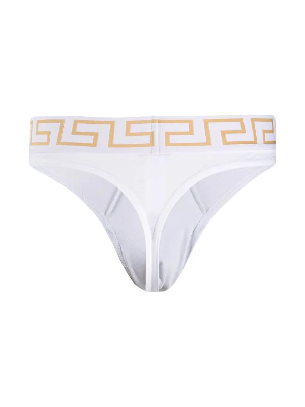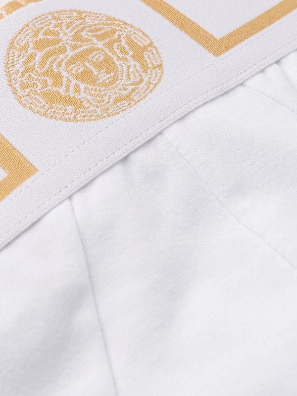 Boxer à bordure Greca en coton Versace avec ceinture élastique et a Medusa head logo embellishment. Couleur : blanc.