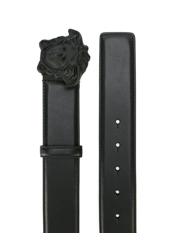 Ceinture « Palazzo Medusa » en cuir noir Versace avec boucle à logo et détails perforés.