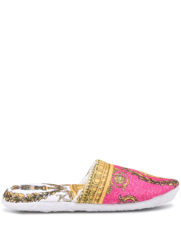 Imprimé Barocco signature, bout rond, design matelassé, semelle plate. Matière : coton.