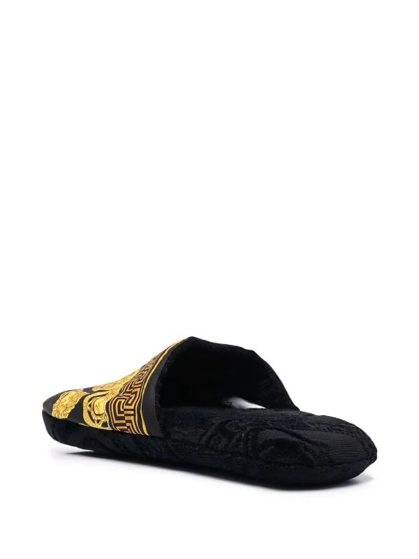 Bout rond, design en jacquard, motif Medusa, semelle plate. Matière : tissu.