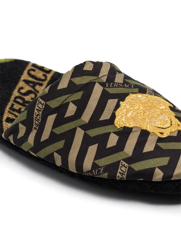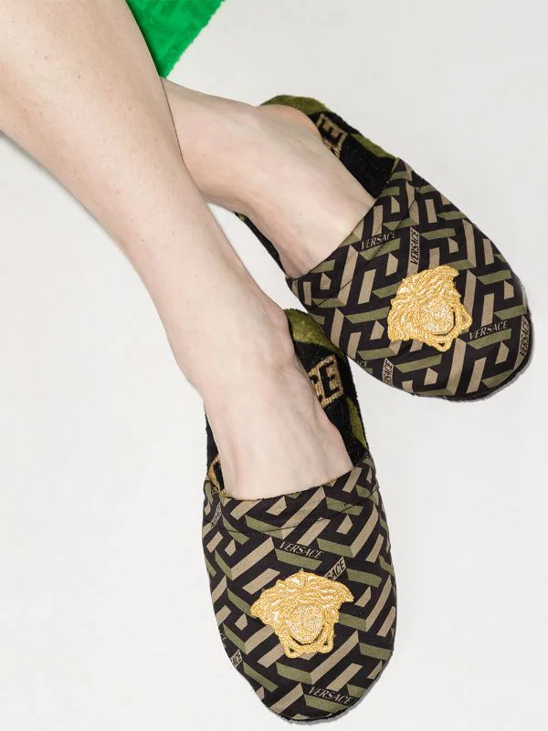Motif Greca signature imprimé, motif Medusa, bout rond, design à enfiler. Couleur : marron. Matière : coton.