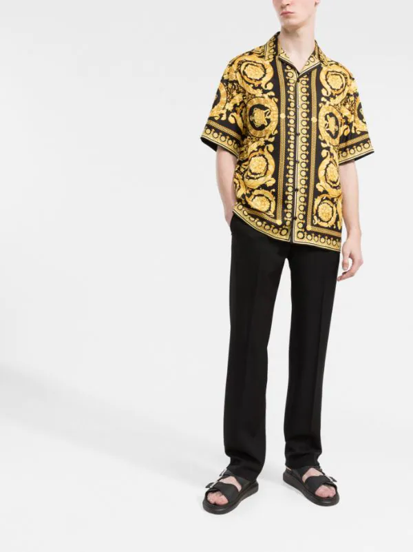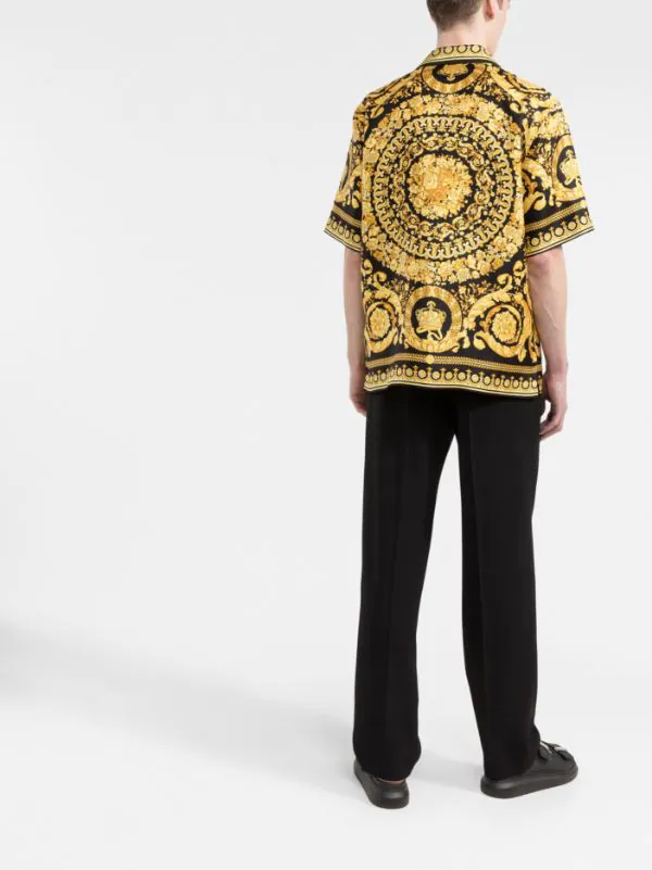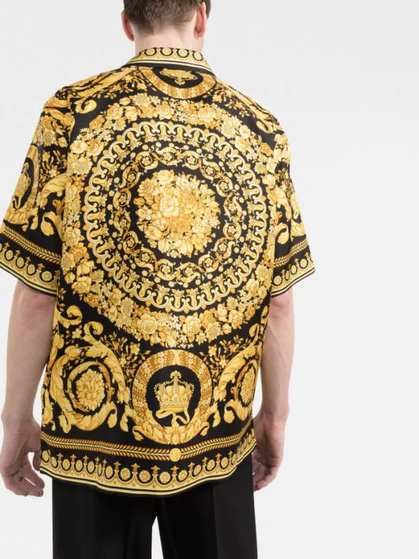 Imprimé Barocco signature, col classique, boutonnière sur le devant, manches courtes, ourlet droit.