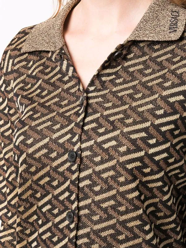 Effet métallisé, imprimé La Greca signature, col italien, boutonnière sur le devant.