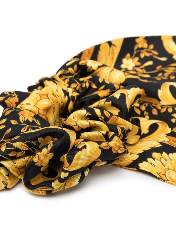 Modèle bicolore, motif baroque, bande élastiquée, fermeture à nouer sur les côtés.