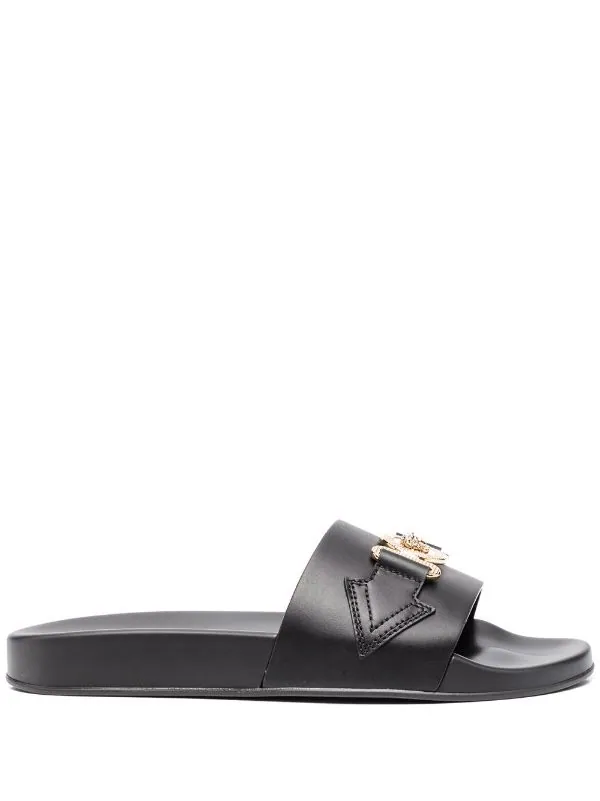 Plaque logo, bout ouvert, design à enfiler. Couleur : noir. Matière : cuir.