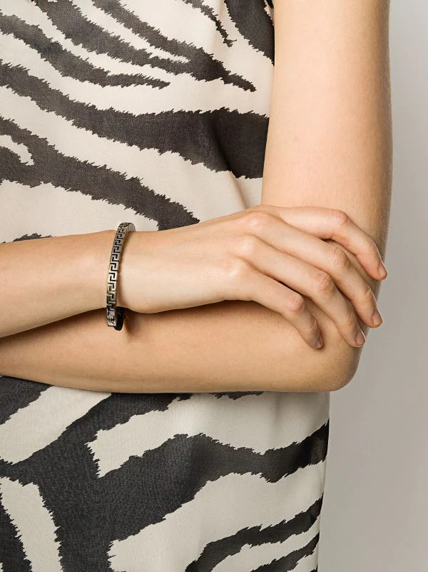 Lien de resserrage, détail Greca signature. Couleur : gris. Matière : Polyester.