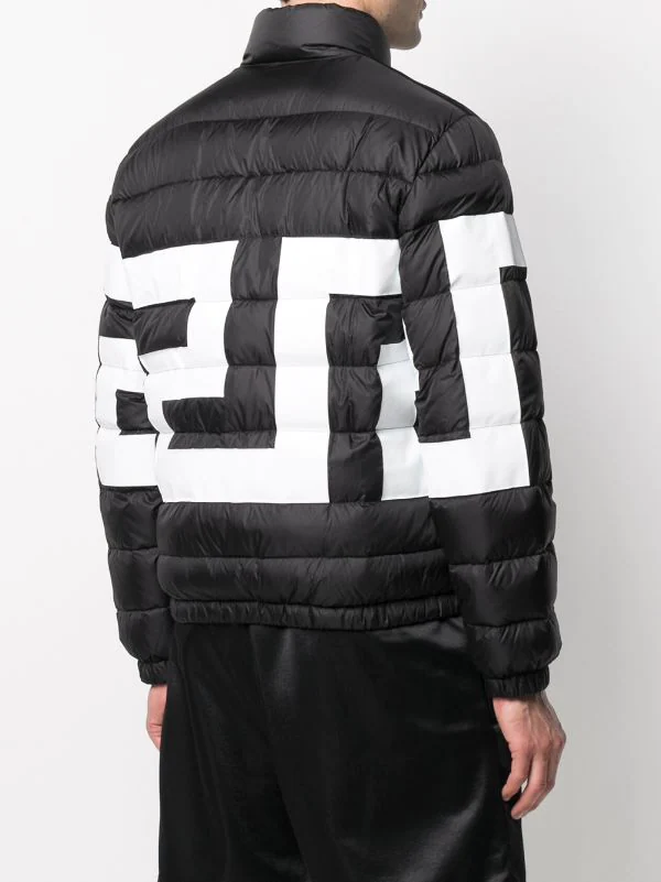 Logo imprimé sur le devant, design matelassé, col cheminée, fermeture zippée devant, manches longues, deux poches latérales zippées. Couleur : noir.