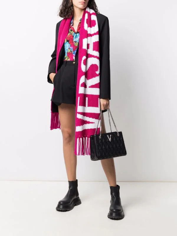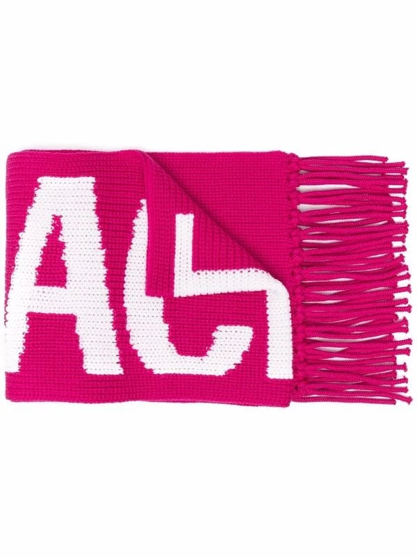 Logo intarsia, maille épaisse, bords frangés. Matière : laine.