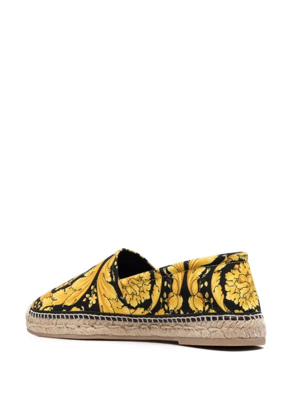 Motif baroque, semelle intérieure à logo, semelle en jute tressé, bout carré, semelle plate, design à enfiler.