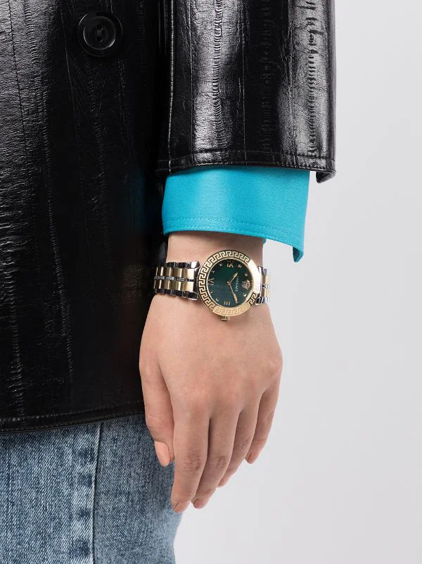 Boîtier rond, mouvement à quartz, bracelet à maillons ajustable, fermeture à loquet, aiguilles index, couronne poussoir. Matière : acier inoxydable. Cet article bénéficie de deux ans de garantie standard proposés par la marque.