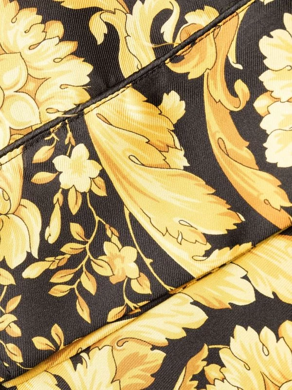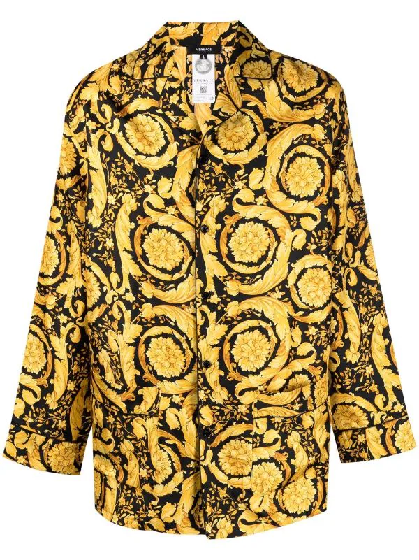 Imprimé Barocco signature, deux poches plaquées avant, boutonnière sur le devant, manches longues, revers crantés, ourlet droit. Matière : soie.