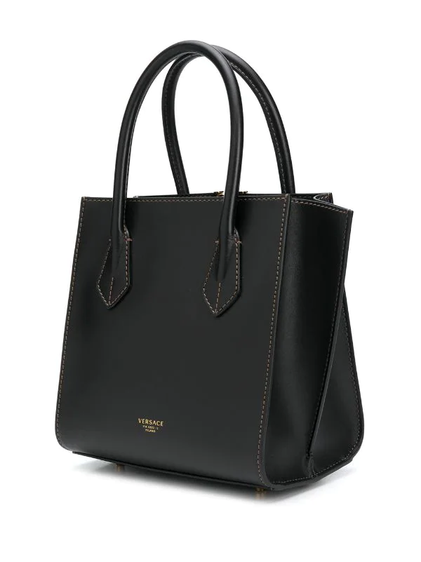 Anses arrondies, plaque logo dorée, coutures contrastantes, compartiment principal. Couleur : noir. Matière : cuir.