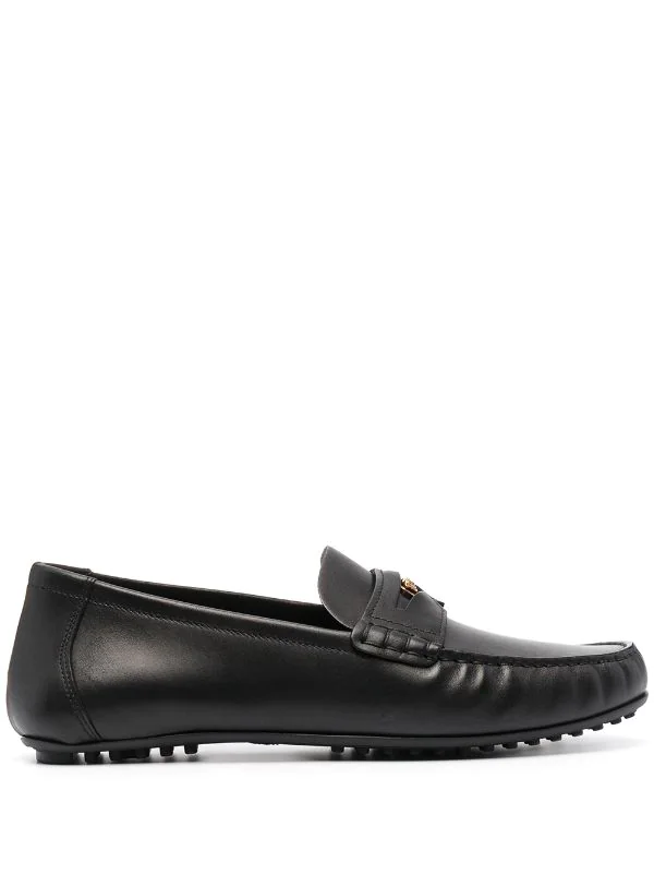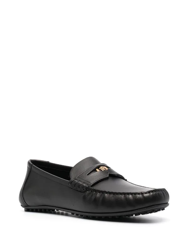 Entaille penny, détail Medusa, bout en amande, design à enfiler. Couleur : noir. Matière : cuir.