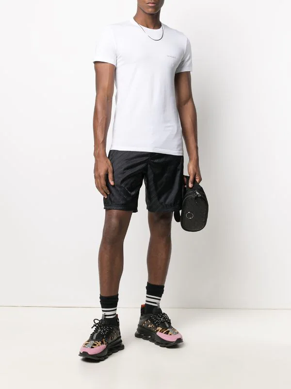 ( Nouvelle Collection ) Versace 1B000 Chaussons Métallisés à Motif La Greca En Jacquard Homme