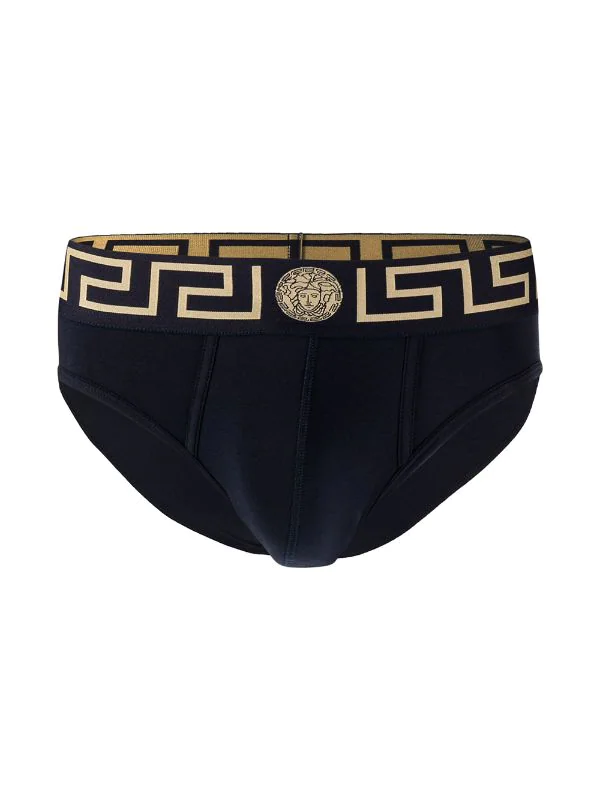 Tricot point jersey, motif Medusa. Couleur : noir. Matière : coton. Les sous-vêtements et les articles de lingerie doivent être essayés par-dessus vos vêtements ; nous comptons sur vous.